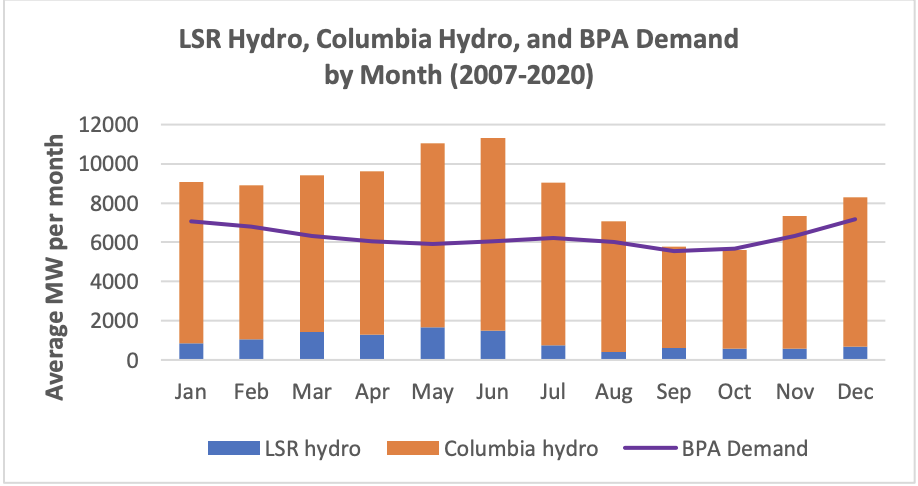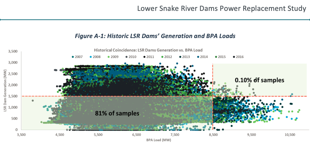 Notably, any good model of the region’s electric grid will show similar result. LSR “must-run” hydropower forces the curtailment of other renewables when demand for energy is lacking (e.g. in the middle of the night).
